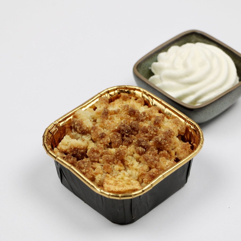 Appel-kruimel in ovenschaaltje met slagroom (gezoet met erythritol)