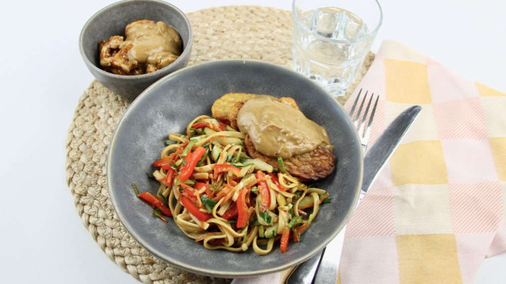 Kipsate & pindasaus: kipfilet, korianderpoeder, knoflook, zonnebloemolie, sojasaus, erythritol, citroengras, sjalotjes, knoflook, rode peper, komijnpoeder, pindakaas 100%, suikervrije ketchup, limoen, zout, peper wit gemalen.